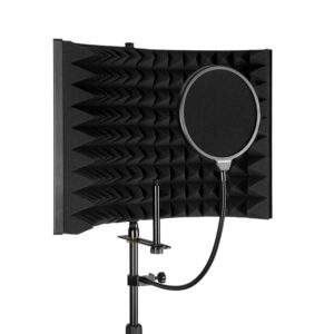 VERSATILITY – The microphone isolation shield can be fixed on a desk or tabletop, and also can be mounted to a microphone stand. Great for professional vocal/acoustic recording and podcasting sound booth.